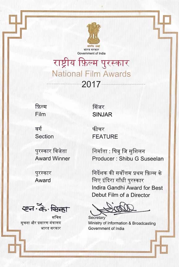 Shibu's productions have not only garnered critical acclaim but have also received prestigious awards both nationally and internationally. His film "8 and Half INTERCUTS – LIFE AND FILMS OF K.G. GEORGE" was selected for the prestigious INDIAN PANORAMA 2017 and received accolades across various film festivals. The groundbreaking film "SINJAR" made history by winning the Best JASARI Film award at the 65th National Awards and was honored with the Best Debut Director Award. Its global debut at the Festival De Cannes and subsequent selections in over 40 national and international film festivals underline its universal appeal and Shibu's commitment to cinematic excellence.