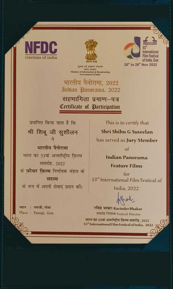 Throughout his distinguished career, Shibu has been recognized with numerous certificates acknowledging his exceptional contributions to the cinema industry. These accolades, earned for his achievements in various aspects of film production, highlight his unwavering dedication and significant impact on the field. Each certificate represents a milestone in his journey, underscoring his expertise and commitment to excellence. Below is a selection of the notable certificates he has received, showcasing his remarkable accomplishments.